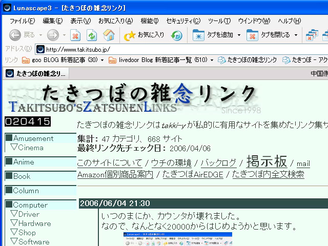 ま、ようやく昼休みにたきつぼのアクセス解析を見れるだけの心の余裕ができて、たきつぼをいじいじするだけの気力が溜まってきたということですかな。