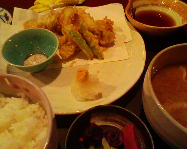 写真 : その居酒屋の板前さんにわがままを言ってカキフライを牡蠣のてんぷらにしてもらう、定食風。