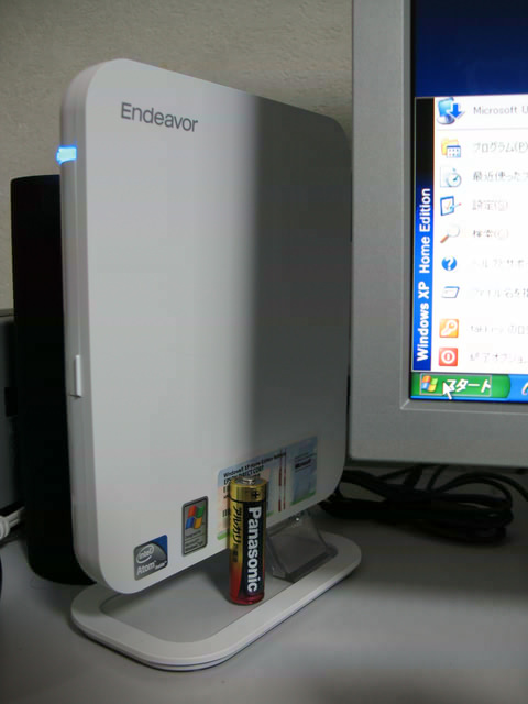 写真 : EPSON Endeavor NP11-V。単三電池との比較。というかシリアル隠し(^^;;